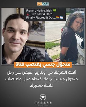 متحول جنسي يغتصب فتاة: ألقت الشرطة في أونتاريو القبض على رجل متحول جنسيا بتهمة اقتحام منزل واغتصاب طفلة صغيرة.